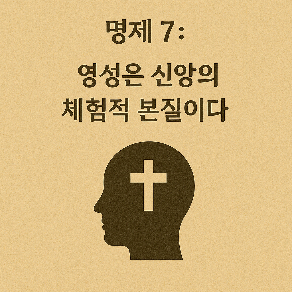 신앙 체험 없는 영성은 근본적 한계를 드러냅니다. 성경은 신앙의 체험이 영성의 본질임을 강조합니다. 요한복음 17:3—“영생은 곧 유일하신 참 하나님과 그의 보내신 자 예수 그리스도를 아는 것이니이다”—는 신앙의 체험이 영성을 드러냄을 보여줍니다. 고린도전서 12:3—“그러므로 내가 너희에게 알리노니 하나님의 영으로 말하는 자는 누구든지 예수를 저주할 자라 하지 아니하고 또 성령으로 아니하고는 누구든지 예수를 주시라 할 수 없느니라”—는 신앙의 체험이 영성의 뿌리임을 증언합니다.