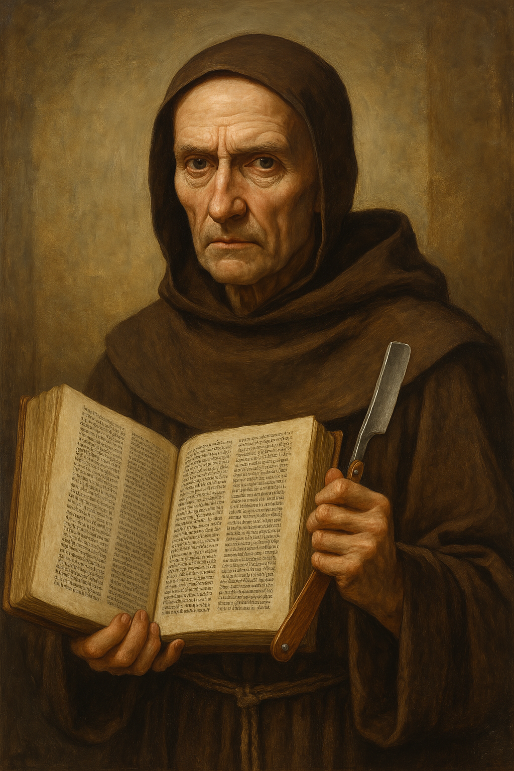 오컴은 복잡한 세상에서 단순함을 찾으려 했다. 그의 면도날은 철학뿐 아니라 일상에서도 울린다. 우리가 세상을 설명할 때, 얼마나 많은 불필요한 가정을 붙이고 있는가? 그는 이렇게 말했을지도 모른다: “생각을 날카롭게 하고, 불필요한 것은 자르라.” 그의 삶은 권위에 맞선 반항이었고, 그의 사상은 후대에 새로운 질문을 던졌다—우리는 얼마나 단순하게, 그리고 얼마나 진실되게 세상을 볼 수 있는가?